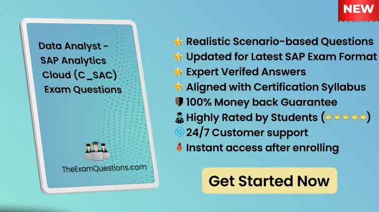 Around 103 scenario-based Data Analyst - SAP Analytics Cloud questions enough to help you to clear the C_SAC exam.